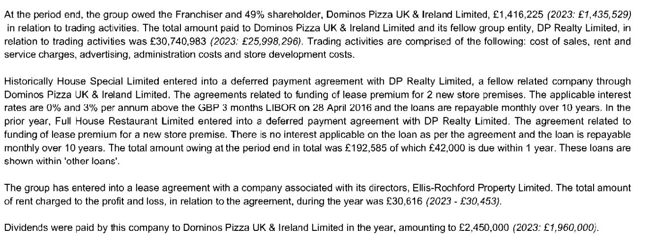 In all Domino’s received £5.2m more from Full House in 2024 than in 2023 (inc dividends) despite volumes being down a little and profits flattish. That might not be a sustainable trend in the future, especially if it is being repeated at other franchisees.