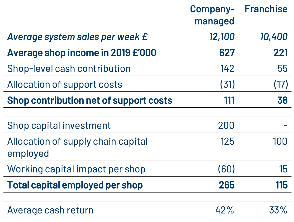 So the battleground for Greggs appears to be around whether its new potential 3500 store target is realistic and to what extent they can raise per store cash contribution. We have an idea about per store cash contribution from the 2021 CMD below: